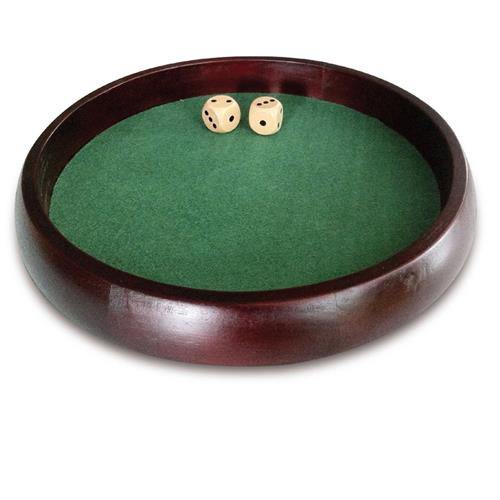 Pokerpiste 34 cm van rubberhout met ingelegd groen vilt, doorsnede 34 cm. Inclusief 2 houten dobbelstenen van 18mm. Verpakt in luxe verpakking.