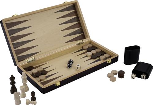De speeleigenschappen van deze set zijn indrukwekkend. Het spel kan gespeeld worden binnen een speeltijd van 60 minuten en biedt zowel een backgammon- als een schaakspel. Bovendien zijn de spelregels en handleiding beschikbaar in vier talen: Duits, Engels, Frans en Nederlands. In de verpakking vind je een opklapbaar schaakspel van essenhout, inclusief schaakstukken.