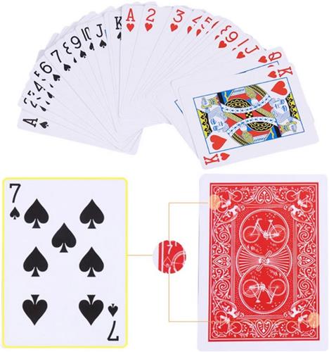 Met deze magische kaarten kun je elk kaartspelletje winnen en indruk maken op familie en vrienden. De valsspeel kaarten zien eruit als een gewoon pakje speelkaarten, maar jij kunt door de kaarten heen kijken. Op de achterkant van elke kaart staat namelijk aangegeven om welke kaart het gaat, waardoor jij altijd een stap voor bent. Dankzij de subtiele aanwijzingen in de linkerbovenhoek van elke kaart, zoals de kleur en het getal of plaatje, hoef je de kaarten niet meer om te draaien. Zo kun je moeiteloos je tegenstanders foppen en je goocheltrucs tot een hoger niveau tillen.