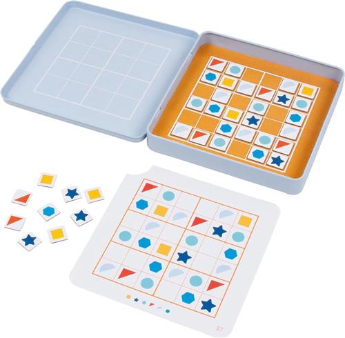 Klassieke bordspellen om onderweg te spelen - magnetisch en in praktische opbergdoos! Deze Sudoku-variant voor kinderen is herbruikbaar en heeft verschillende geometrische vormen in plaats van cijfers. Het magneetspel bevat 36 magneten en 25 voorbeeldkaarten, waardoor kinderen urenlang plezier kunnen hebben met het oplossen van puzzels. Dankzij de compacte afmetingen van 16,2 x 16,2 x 2,6 cm is dit spel ideaal om overal mee naartoe te nemen, of het nu op reis is of gewoon thuis. Met een aanbevolen leeftijd vanaf 4 jaar is dit educatieve spel perfect voor jonge kinderen om hun logisch denkvermogen te ontwikkelen en plezier te hebben met magneten.