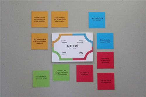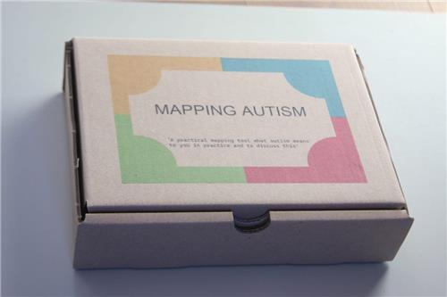 Mapping autism is een educatief spel waarmee je kunt uitleggen wat autisme is. Het is een selectie van aspecten waarmee iemand met autisme dagelijks te maken kan krijgen en om hierover te praten. Nadat iemand gediagnosticeerd is met autisme, begint eigenlijk de zoektocht. Wat betekent autisme voor mij en mijn omgeving? Wat valt er onder autisme en wat zijn mijn kenmerken en wat is normaal voor mijn leeftijd? Autisme is voor iedereen anders. Als je een mindmap maakt, ontdek je wat het voor jou betekent. Om beter met autisme om te kunnen gaan, besteden coaches, adviseurs en therapeuten vaak veel tijd aan psycho-educatie. Het spel bestaat uit vier termen: executieve functies, centrale coherentie, theorie van de geest en sensorische verwerking. Elke term heeft 50 kaarten. Aan het einde van het spel kun je vragen beantwoorden zoals: wat zie je nu? Hoe voel je je als je deze kaarten voor je ziet?