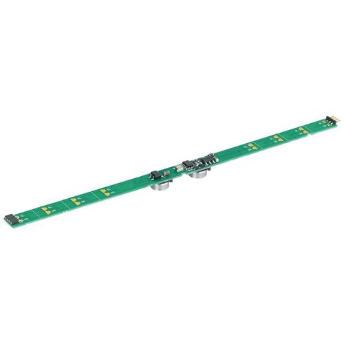 De Märklin 73410 LED-strip Warm-wit is een universele printplaat met meerdere LED's die ideaal is voor de meeste personenrijtuigen in het Märklin H0-assortiment. Met een ingebouwde condensator biedt deze printplaat een knippervrije werking, terwijl de helderheid van de interieurverlichting handmatig kan worden aangepast. Bovendien is het mogelijk om de printplaat op verschillende plaatsen in te korten voor kortere wagens. Een bevestigingsbeugel voor montage aan het interieur is inbegrepen, waardoor de installatie eenvoudig is.