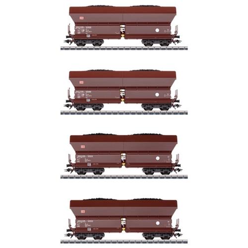 Ontdek de Märklin aus 46670 H0 4-delige wagenset Falder NS 182 van de Deutsche Bahn AG (DB AG), een hoogwaardige aanvulling voor uw modelspoorcollectie. Deze prachtige set omvat vier vierassige, grote, open zelflossers van het type Falns 182, perfect voor het transport van nat-ongevoelige stortgoederen. De wagens zijn uitgevoerd in een aantrekkelijke roodbruine basiskleurstelling, waarmee ze een authentiek en gedetailleerd uiterlijk hebben.