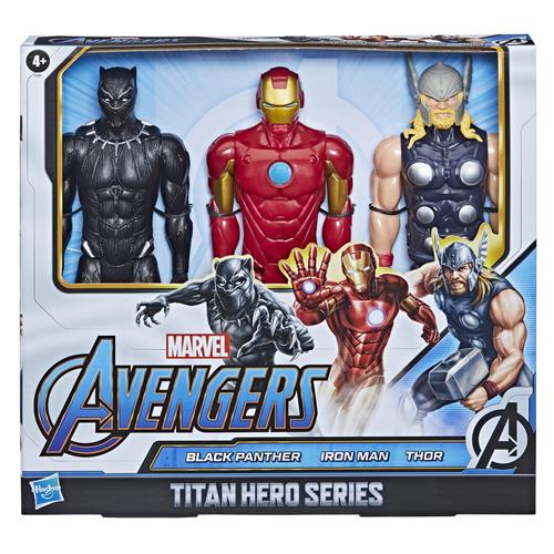 Laat de Avengers gezamenlijk de vijanden bestrijden die ze alleen niet aankunnen; ze vormen het krachtigste superheldenteam ter wereld! Met dit Titan Hero Series Avengers Black Panther, Iron Man en Thor 3-pack breng je de actie en opwinding uit het Marvel-universum bij elkaar. Kinderen vanaf 4 jaar kunnen met deze set actiefiguren zich voorstellen hoe ze zich voorbereiden om de Aarde te beschermen tegen geduchte schurken, geïnspireerd door het Marvel-universum. Met klassieke vormgeving en details, en meerdere beweegbare punten om de figuren in de juiste positie te zetten. Met dit Avengers speelgoed zullen jongens en meisjes met plezier fantasierijke gevechten voeren naast het sterkste superheldenteam ter wereld!
