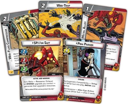 Na de mysterieuze dood van haar vader werd Peni Parker de nieuwe piloot van het SP//dr-pak. Samen met haar spinachtige co-piloot, waarmee ze psychogenetisch verbonden is, verdedigt SP//dr de inwoners van New York City tegen grote en kleine aanvallen, en reist ze soms zelfs door het Multiversum om mede-Spider-helden te helpen het bestaan zelf te redden. Nu zwaait SP//dr zich een weg in de spellen van Marvel Champions LCG! SP//dr is een high-tech held met een unieke resource-engine, waardoor ze de interface-upgrades van haar pak op talloze manieren kan gebruiken. Met deze Hero Pack vinden spelers SP//dr, haar zeventien kenmerkende kaarten, en een volledig assortiment Beschermingskaarten die spelers uitnodigen om de aanval van de schurken in hun tracks te stoppen. Deze set bevat ook een bonusmodulaire ontmoetingsset met de beruchte Sinister Six van Iron Spider! Voor spelers die klaar zijn om de schurken van het Multiversum uit te dagen, kunnen ze aan de slag met de SP//dr Hero Pack! Deze 60-kaarten Hero Pack bevat: - Een 40-kaarten vooraf gebouwd deck, waardoor spelers meteen uit de doos kunnen beginnen spelen! - Nieuwe kaarten die aan elk Marvel Champions-heldendek kunnen worden toegevoegd! - Een nieuwe modulaire set die aan verschillende scenario's kan worden toegevoegd! - Een Nemesis-set met M.O.R.B.I.U.S.!