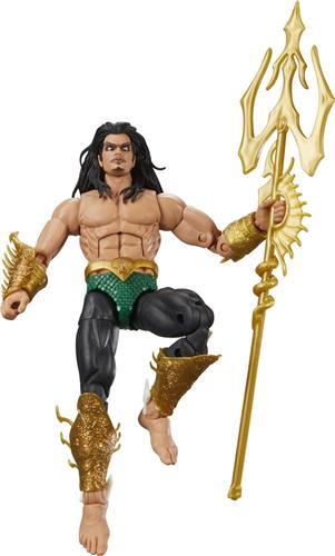De Hasbro Marvel Legends Namor-actiefiguur wordt geleverd met accessoires geïnspireerd op de Marvel-comics, waaronder een drietand en extra handen. De figuur maakt geen geluid en heeft geen batterijen nodig, wat hem perfect maakt voor kinderen en volwassenen vanaf 4 jaar oud. De verpakking bevat de actiefiguur, 5 accessoires en 4 Build-a-Figure onderdelen.