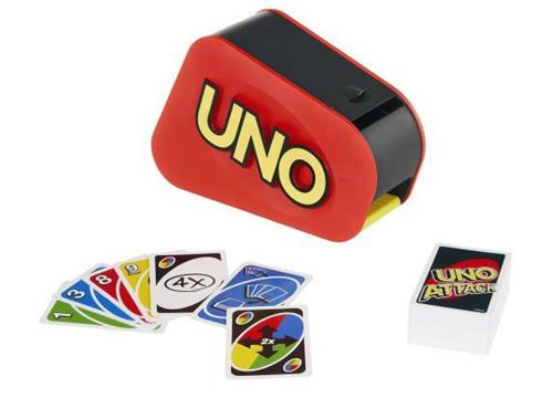 Iedereens favoriete kaartspel wordt nóg leuker met UNO Attack! Deze versie van de UNO Attack-lanceerder zorgt voor actie, spanning en verbazing met zijn strakke look, coole geluiden en kaarten die hoog de lucht in worden geschoten. Licht en geluid wordt naarmate het spel vordert heftiger voor extra spanning! Plaats kaarten in de lanceerder en speel het spel vervolgens als het klassieke UNO, maar pas op voor de vliegende kaarten als de Aanval!-kaart tevoorschijn komt: het kan één kaart zijn, maar ook vijf! Spelers moeten nog steeds 'UNO!' roepen als ze nog maar één kaart in hun hand hebben. Perfect voor een spelletjesavond en een leuk cadeau voor elke kaartspelliefhebber van 7 jaar en ouder.
