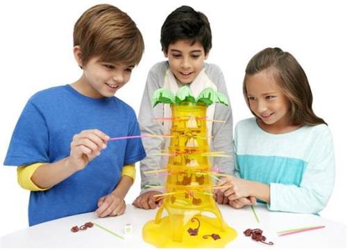 Speel het spannende behendigheidsspel Vallende Aapjes van Mattel Games en zie hoe de aapjes wiebelen in de palmboom terwijl je de stokjes voorzichtig uittrekt. Het doel van het spel is simpel: zorg ervoor dat de aapjes niet uit de boom vallen terwijl je aan de beurt bent. De speler die de minste aapjes laat vallen, wint het spel en mag zich kampioen van de jungle noemen!
