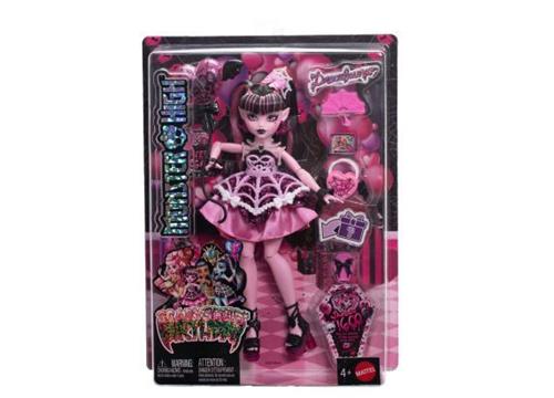 Vier een spookachtig avontuur met de Mattel Monster High pop Draculaura, die haar griezelig zoete 1600e verjaardag viert! Deze modepop is perfect voor elk kind dat dol is op de betoverende wereld van Monster High. Met haar schitterende vampierjurk en spookachtige accessoires is ze klaar om een onvergetelijk feestje te geven. Laat je fantasie de vrije loop terwijl je samen met Draculaura allerlei spannende verhalen bedenkt!