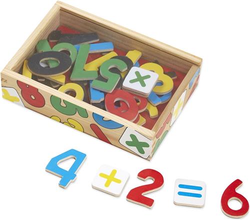 Met de Melissa & Doug - Magnetische Houten Nummers kunnen kinderen op een leuke en educatieve manier kennismaken met cijfers en rekensommen. De set bestaat uit 37 houten nummer- en tekenmagneten die gemakkelijk op een magnetisch oppervlak kunnen worden geplaatst. Het educatieve spel is geschikt voor kinderen vanaf 2 jaar en biedt een speeltijd van 30 minuten.