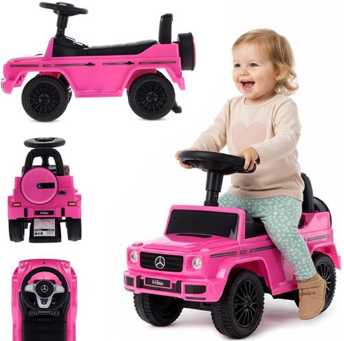 - Bij Bol.com kun je Mercedes G Klasse Kindervoertuig, loopauto met Claxon, ride on, babyauto, loopstoeltje met claxon en motorgeluiden, max 25 kg (Roze) kopen voor de prijs van € 42,77. Dit is vandaag de goedkoopste webshop.