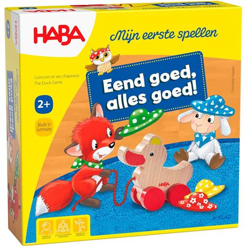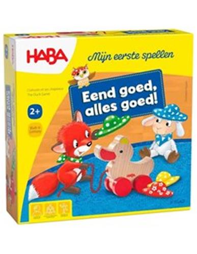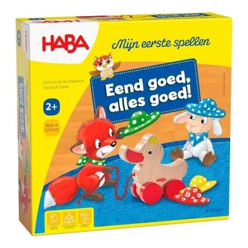 HABA Spel Mijn eerste spellen Eend goed, alles goed is ideaal voor kinderen vanaf 2 jaar om op een speelse manier samen te leren en te spelen. Het stimuleert de motorische vaardigheden, concentratie en sociale interactie van jonge kinderen. Het doel is om de eendjes veilig naar hun nest te brengen voor de vos het pad bereikt. Door dobbelstenen en gelukkige worpen kunnen de spelers de eendjes veilig begeleiden over de vijver.