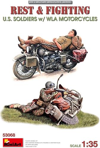 - Bij Bol.com kun je MiniArt Modelbouwpakket Militaire voertuigen - 53068 Rustende en Vechtende Amerikaanse Soldaten WWII - 2 Figuren met 2 WLA Motorfietsen Plastic - 1:35 - kopen voor de prijs van € 38,95. Dit is vandaag de goedkoopste webshop.