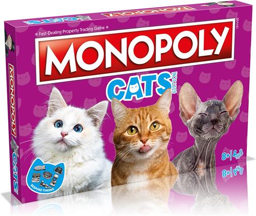 Monopoly Cats is een Engelstalige editie van het klassieke bordspel Monopoly, maar deze keer met een grappige katten twist! Dit geluksspel combineert strategie met het plezier van katten. Het spel is geschikt voor kinderen en volwassenen, met een aanbevolen minimumleeftijd van 8 jaar en een aanbevolen maximale leeftijd van 99 jaar. Het kan gespeeld worden door 2 tot 6 spelers en is uitgegeven onder een licentie.