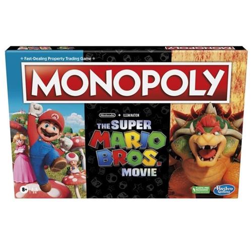 Met deze spannende Monopoly Super Mario Bros filmeditie van het bordspel voor kinderen, kunnen fans het Paddenstoelenrijk verkennen door locaties uit het Super Mario-universum te kopen, verkopen en ruilen! Bewonder de iconische Mario-illustraties, -personages en op de film geïnspireerde thema's. Er wordt met gouden munten gespeeld in plaats van Monopoly-speelgeld in deze race om te zien wie de meeste munten kan verzamelen om te winnen. Verdien nog meer door bijbehorende kleursets te verzamelen. Maar pas op voor Bowser, die bezittingen kan wegvegen, munten kan stelen of spelers naar de Gevangenis kan sturen! Ontdek sluiproutes door buizen en verzamel of verlies munten met ?-blokken en Piranha Planten! Super Mario-spellen zijn spannende cadeaus voor kinderen, gamers, Mario-fans en Monopoly-fans vanaf 8 jaar. Copyright 2023 Nintendo. Alle rechten voorbehouden. Copyright Universal City Studios LLC en Amblin Entertainment, Inc. Alle rechten voorbehouden. De namen HASBRO en MONOPOLY en hun logo's, het kenmerkende ontwerp van het spelbord, de vier hoekvakjes, de naam en het personage MR. MONOPOLY evenals elk van onderscheidende elementen van het bord en de speelstukken zijn handelsmerken van Hasbro, Inc. voor haar beroemde vastgoedspel en toebehoren. © 1935, 2023 Hasbro. TM &® verwijzen naar Amerikaanse handelsmerken.