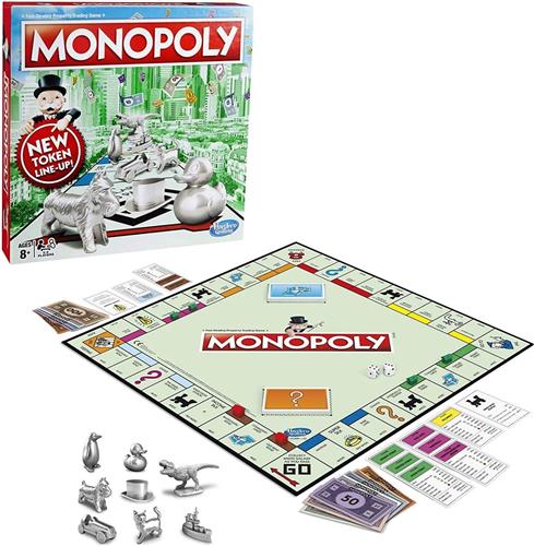 Monopoly Classic, het snel verhandelbare spel waarin spelers kopen, verkopen, dromen en hun weg naar rijkdom plannen. Deze versie van het Monopoly-spel verwelkomt de Rubber Ducky, Tyrannosaurus Rex en Penguin in zijn familie van tokens. Kies je token, plaats deze op GO! en gooi de dobbelstenen om alles te bezitten!