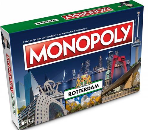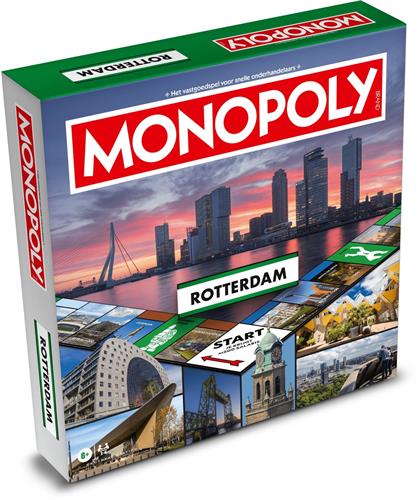 Monopoly Rotterdam is er weer! Hoe gers is dat? De Monopoly Rotterdam editie is een feest van herkenning. Heel Rotterdam komt aan bod. Van de Parklaan, via de Coolsingel naar de Groene Hilledijk en doet je boodschappen nog effe in de Koopgoot of op de mar(k)t. De Pluk me Kaalstraat en de Euromast mogen uiteraard ook niet ontbreken. Kortom, uren speelplezier en leef als een vastgoedmagnaat in Rotterdam. Deze Monopoly Rotterdam editie is een musthave voor iedere Rotterdammer!