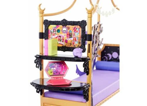 De Monster High Clawdeen Wolf slaapkamer is een must-have voor alle fans van Monster High. De slaapkamer is gedetailleerd ontworpen in een opvallende paarse kleur, waardoor het een echte eyecatcher is in de kamer van elk kind. Met dit speelgoed kunnen kinderen hun fantasie de vrije loop laten en hun eigen Monster High avonturen beleven.