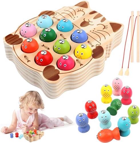 Montessori-speelgoed vissenspel, vissen, houten visspel voor kinderen