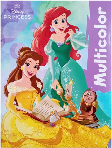 Multicolor Disney Princess Colouring Book - kleurboek met voorbeelden - prinsessen - Belle en Ariel de kleine zeemeermin - paarse banner