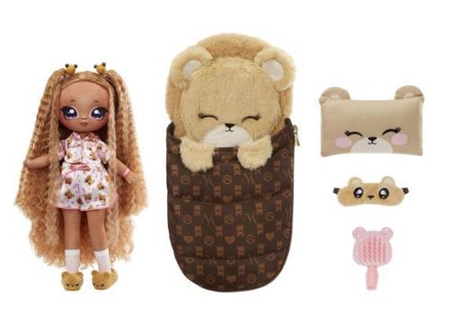 Ontdek de betoverende wereld van Na! Na! Na! Surprise Teens met het Slumber Party Lara Vonn modepopje! Met een hoogte van 28 cm is Lara Vonn een prachtige zachte modepop boordevol persoonlijkheid en glamour. Haar look is geïnspireerd door een schattige teddybeer, compleet met lang, bruin haar en unieke geprinte details op haar gezicht en kleding.