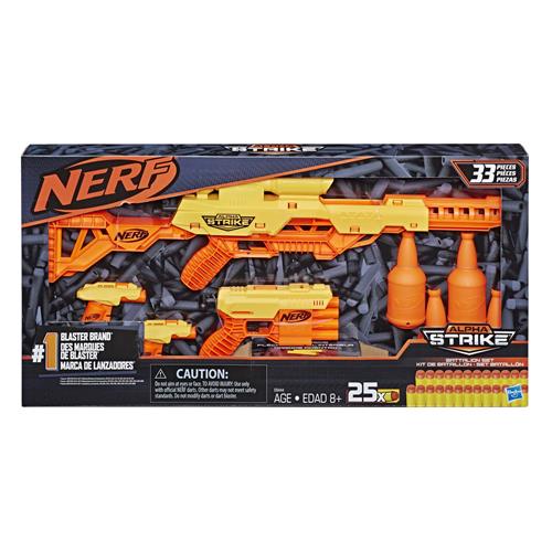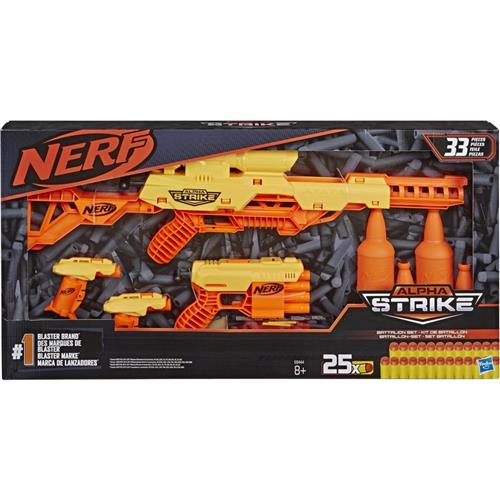- Bij Bol.com kun je Nerf Alpha Strike Battalion Set + 25 Darts kopen voor de prijs van € 28,56. Dit is vandaag de goedkoopste webshop.