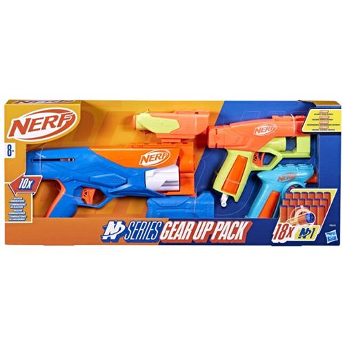 - Bij Bol.com kun je NERF N Series Gear Up Pack - set van 3 speelgoedblasters kopen voor de prijs van € 23,99. Dit is vandaag de goedkoopste webshop.