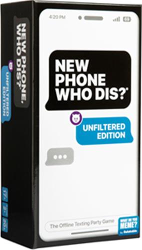 - Bij Bol.com kun je New phone, who dis? 100% offline text message party game! Van de makers van What Do You Meme? - party game kopen voor de prijs van € 22,39. Dit is vandaag de goedkoopste webshop.