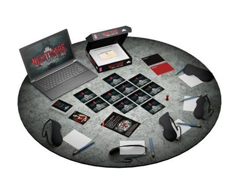 | Verpakkingsinhoud | Instructies, 5 blinddoeken, 10 kamertegels, 1 pion, 13 herinneringen, 11 gebeurtenissen, 58 Nightmare verhaalkaarten, 1 envelop met 8 notities |