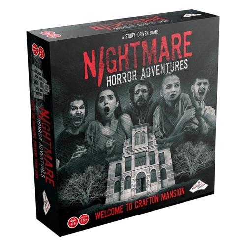 Nightmare Horror Adventures is een spannende, meeslepende en avondvullende belevenis vol verrassingen. In 'Nightmare Horror Adventures: Welcome to Crafton Mansion' speel je één van de vijf Crafton-kinderen en ga je in het oude landhuis op zoek naar aanwijzingen over de moord op jullie ouders 15 jaar geleden. Onderzoek de kamers, herontdek je verdrongen herinneringen en kom stap voor stap dichter bij de waarheid. Overleg en maak de juiste keuzes. Maar let op: de tijd dringt en niets is wat het lijkt! In dit coöperatieve, verhaal-gedreven spel heb je maar één kans om de echte moordenaar te vinden en het mysterie op te lossenâ?¦ Solve the murders, prevent your own!