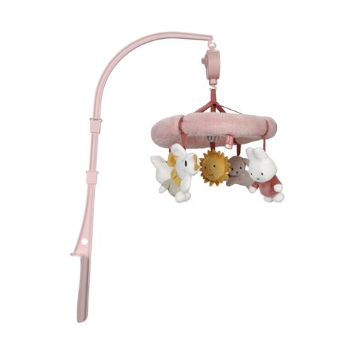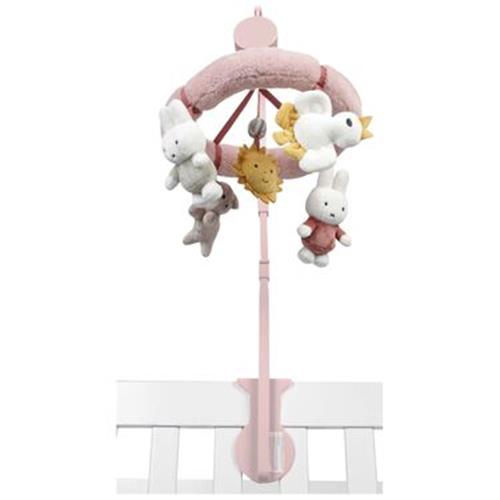 Laat je kleintje wegdromen met de schattige Nijntje Muziekmobiel Fluffy in het roze. Met de handige draaiknop speelt de mobiel het bekende en rustgevende deuntje van Nijntje, lief klein konijntje af. Terwijl de vrolijke figuurtjes rondzweven, kan je kindje zijn visuele ontwikkeling stimuleren en zich urenlang vermaken. De mobiel is eenvoudig te bevestigen aan de box of ledikant, waardoor het een ideale toevoeging is aan elke baby- of kinderkamer.