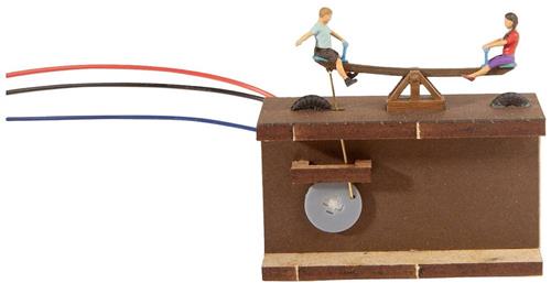 Met volle kracht naar boven! De Noch micro-motion wipwap wekt bij iedereen geweldige herinneringen op aan de kindertijd. Wie herinnert zich niet het gevoel van vrijheid toen je met je beste vriend in volle vaart op en neer ging op de wip. Een leuke dag in de speeltuin is voor ieder kind een geweldige ervaring. Vooral de wip maakt elk kind blij als je de balans vindt om niet in de lucht te blijven hangen en je vriend(innet)je omhoog te laten gaan. Niemand wil zelf in de lucht blijven hangen maar iedereen vindt het wél leuk om de tegenpartij hoog in de lucht te houden. Breng die geweldige kindertijd terug op uw modelspoorbaan met deze micro-motion kinderwip en zorg voor een echte blikvanger wanneer de kinderen juichend de lucht in vliegen. Dit speeltoestel mag op geen enkele kinderspeelplaats ontbreken naast de kinderdraaimolen, de vogelnestschommel, een glijbaan, de zandbak en de vele andere speeltoestellen.