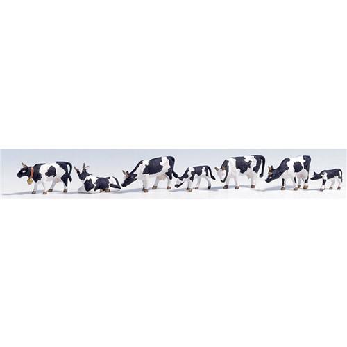 Met de NOCH 15721 H0 Dieren figuren Geverfd, Staand, tovert u een leeg stuk grasland om tot een schilderachtige Hollandse weide met de iconische zwartbonte runderen zoals de Holstein-Friesian of Fries-Hollandse koeien. Dit pakket bevat 7 beschilderde dierenfiguren die perfect in elke H0 modelspoorbaan passen.