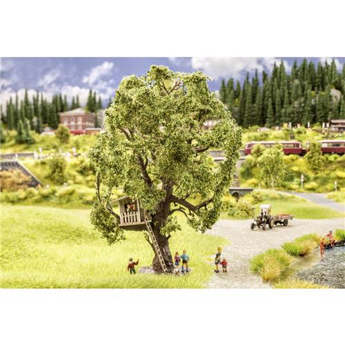 De NOCH 21765 Boom Eik van 150 mm is een indrukwekkend stuk voor elk modelspoorlandschap. Met zijn liefdevol vormgegeven boomhut is deze boom een echte eyecatcher. De boomhut is een gedetailleerd lasergesneden bouwwerk en komt kant-en-klaar, wat het gemakkelijk maakt om toe te voegen aan je modelbaan in schaal H0.