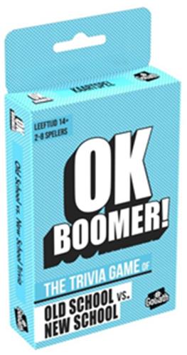 Het Goliath Ok Boomer Kaartspel is hét spel voor alle generaties en tegen alle generaties. Speel in teams of tegen elkaar. Wie weet het meeste? Het Goliath Ok Boomer Kaartspel is de kennisquiz waarbij de oudere generatie het opneemt tegen de jongere! Test je kennis van de popcultuur uit de generatie van je tegenstanders. Speel in teams verdeeld op generatie. Als spelers ongeveer dezelfde leeftijd hebben, dan speelt ieder voor zich!