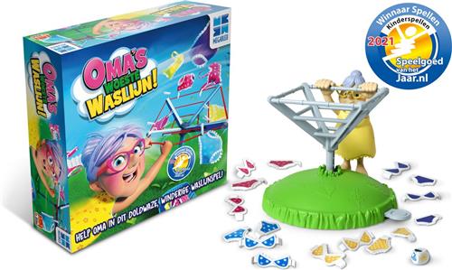Oma's Woeste Waslijn is een leuk actiespel voor kinderen waarbij ze oma helpen met het ophangen van de was. Het spel wordt extra spannend door de winderige omstandigheden, waardoor het een leuke uitdaging vormt. Dit grappige en verrassende kinderspel is zelfs bekroond met de titel "Speelgoed van het jaar 2021" in de categorie "Kinderspellen". Het spel werkt op 3 AA-batterijen (niet meegeleverd).