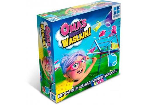 | Verpakkingsinhoud | 1 waslijn, 1 oma + kleedje + bril, 4 sets plastic wasgoed (16 stuks), dobbelsteen, spelregels. |