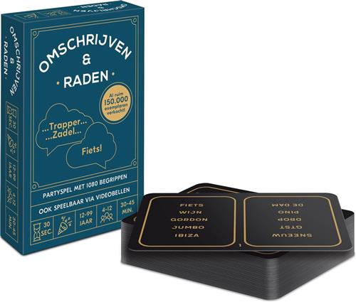 Dit hilarische pocketformaat (brievenbuspost!) raadspel bevat 55 kaartjes (1 spelregelkaart en 54 kaartjes met totaal 1080! begrippen). In dit partyspel, dat in iedere zak past en ook via videobellen gespeeld kan worden, strijden teams van 2 of meer spelers tegen elkaar! Eén teamlid omschrijft binnen 30 seconden zoveel mogelijk van 5 begrippen op een kaartje, terwijl de andere teamleden raden. Dit raadspel (waarvan er inmiddels 2 edities bestaan) werkt eigenlijk precies hetzelfde als andere omschrijf- & raadspellen. Maar er is een twist; hoe minder woorden worden gebruikt om iets te omschrijven, des te meer punten er te verdienen vallen (een begrip omschrijven met 5 woorden = 1 punt / met 4 woorden = 2 punten / met 3 woorden = 3 punten / met 2 woorden = 4 punten en met 1 woord = maar liefst 5 punten)! De vraag is natuurlijk of het dan wel geraden wordt en de grap is dat de omschrijvende speler al voordat de begrippen zichtbaar zijn, moet aangeven met maximaal hoeveel woorden een begrip omschreven gaat worden! Door slim gebruik te maken van het materiaal staan op ieder opgavekaartje 4x 5 begrippen. De 1080 opgaven zijn zeer divers; bekende personen, plaatsen, programma s, films, merken, gebruiksvoorwerpen en andere dagelijkse woorden. Onder de tijdsdruk ga je de meest vreemde woorden gebruiken. Dat wordt lachen gieren brullen. Veel speelplezier gewenst!LET OP: om het vouwdoosje zit geen cellofaan maar de kaartset erin zit wel in cellofaan en er bestaan 5 andere versies van het spel 'Omschrijven & Raden #1' bedoeld voor de Kerstpakkettenmarkt ('Press Pause' artikelnummer 6169 / 'Driving Home' artikelnummer 6230 / 'CMPLMNT' artikelnummer 6254 / 'Teamwork' artikelnummer 6278 / 'Road Trip' artikelnummer 6461) die reeds zeer succesvol zijn verkocht. Die versies hebben een ander vouwdoosje maar bevatten dezelfde kaartset.