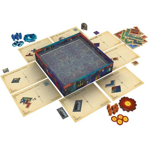 | Verpakkingsinhoud | Inhoud: 16 vierkante keientegels 12 gebouwen 9 speciale speelstukken 14 schoorstenen 8 actiefiches 1 speelbord (ingebouwd in de doos) 12 actiekaarten De spelregels |