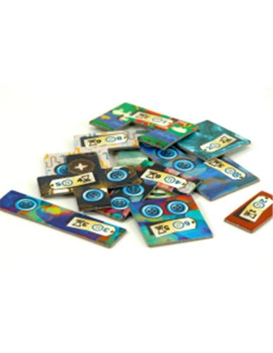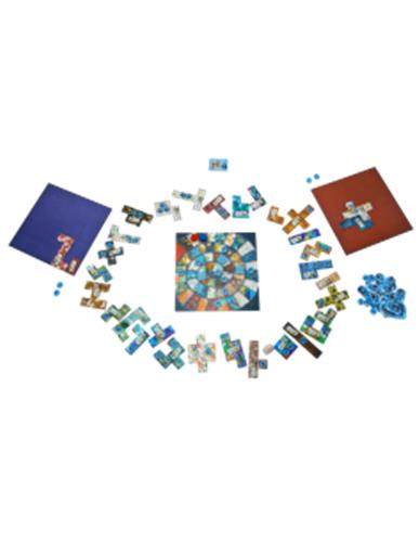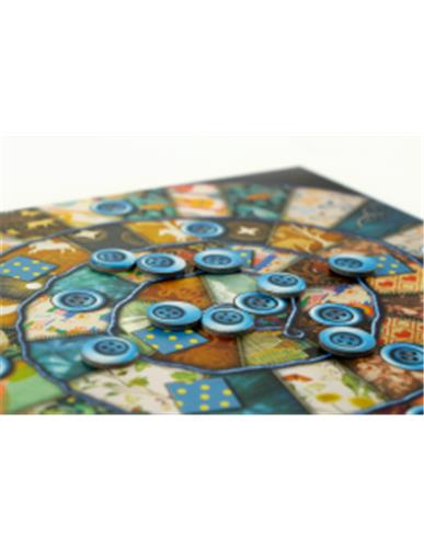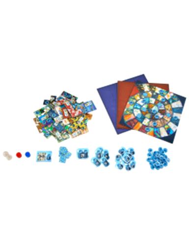 | Verpakkingsinhoud | Inhoud: 1 gemeenschappelijk tijdspoor 2 dekentableaus 1 neutrale pion 2 tijdstenen 5 stukjes leer 1 bonustegel 50 knopen 33 lapjes spelregels |