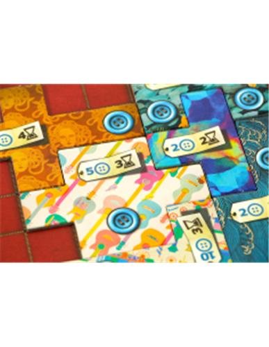 Probeer zoveel mogelijk lapjes op je dekentableau te leggen. Zorg niet alleen dat het lapje past, maar houd ook rekening met de tijd die het inpassen kost en de inkomsten die het in knopen genereert. Uiteindelijk krijg je namelijk zoveel punten als het aantal knopen dat je hebt minus tweemaal de onbebouwde velden op je speelbord. Bouw je als eerste een deken van 7 x 7, dan scoor je bonuspunten! In Patchwork zijn jullie niet persé afwisselend aan de beurt. Wie in tijd achterloopt, is zolang aan de beurt tot zijn tijdsteen de ander heeft ingehaald. Dit kan leiden tot interessante dilemma's. Omdat de lapjes altijd in een andere volgorde om het speelbord liggen, is geen spel gelijk. Door de eenvoudige spelregels in combinatie met tactische uitdaging is Patchwork leuk voor iedereen! Tactische tips: Let goed op de tijd. Die kan je extra beurten opleveren.