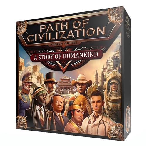 Ontdek alle ingrediënten die je verwacht in een beschavingsspel, zoals een scala aan technologische evoluties, belangrijke gebeurtenissen, oorlogen, wonderen, leiders... Vanaf de allereerste seconde van elk spel worden spelers geconfronteerd met keuzes die gevolgen hebben voor de rest van het spel. Kiezen is opgeven. Jouw beslissingen zullen voor altijd de geschiedenis van de mensheid veranderen. Selecteer de vier Technologiekaarten die je deze ronde wilt gebruiken en verwerp de vijfde kaart voorgoed. Gebruik de kaarten aan de linkerkant om je agenten op missies te sturen om de filosofie te bevorderen, nieuwe wonderen te bouwen of invloedrijke leiders te werven. Gebruik de kaarten aan de rechterkant om onderzoekspunten te verkrijgen en nieuwe technologieën en hun bonussen te ontdekken. Los een Uitdaging van de Mensheid op of neem het op tegen andere spelers in een grote Slag om overwinningspunten en beloningen te verdienen. Elke fase van een beurt wordt tegelijkertijd gespeeld voor alle spelers. Path of Civilization is ontwikkeld om de speeltijd te optimaliseren. Dat betekent dat je kunt genieten van alle sensaties van een beschavingsspel in minder dan 90 minuten. De combinatie van Uitdagingen en Gevechten vertegenwoordigt zelf meer dan 2000 mogelijke configuraties, om nog maar te zwijgen van het feit dat spelers slechts een deel van de beschikbare Wonderen en Leiders zullen gebruiken. Geen twee spellen zullen ooit hetzelfde zijn. Inbegrepen is een solo-modus. Confrontatie met een gepland spel-systeem met configureerbare moeilijkheidsgraad leidend tot een totaal aantal te overwinnen overwinningspunten.