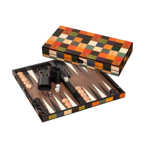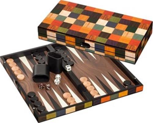 De Philos Backgammon Kassette Fourni Medium is een prachtige backgammon set gemaakt van MDF hout met een magneetsluiting. Het hout aan de binnenzijde is mooi bedrukt en de afmetingen zijn 38 x 19,5 x 5,5 cm. Deze set wordt geleverd inclusief speelstenen en dobbelstenen, zodat je direct kunt beginnen met spelen.