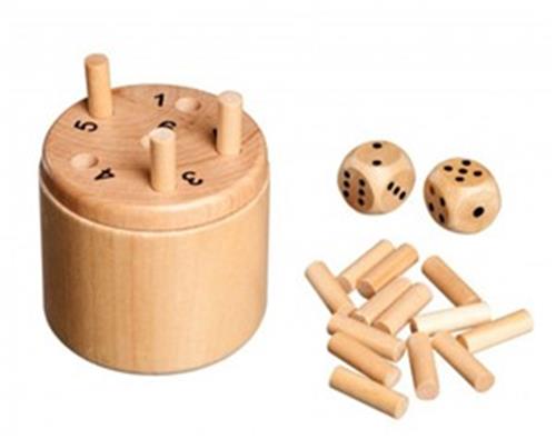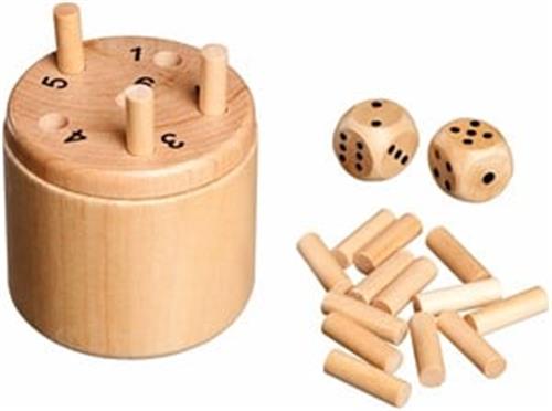 Philos Dobbelspel Vat Klein is een gezellig dobbelspel voor de hele familie, ook bekend als supersix. Wie raakt er als eerste zijn speelstukken kwijt? Dit spel is geschikt voor 2 tot 10 spelers vanaf 6 jaar. De afmetingen van het spel zijn 240 mm lengte, 55 mm breedte en 50 mm hoogte, gemaakt van hout.