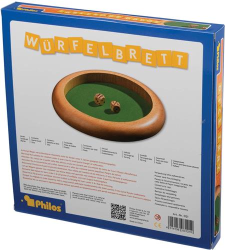 Met de Philos Dobbelsteenbak haal je een handige accessoire in huis voor al je dobbelspelletjes. Nooit meer zal een dobbelsteen van de tafel rollen of stilvallen op een kleed of zachte ondergrond. Deze beukenhouten dobbelsteenbak is voorzien van een vilten inleg en heeft een doorsnede van 22 cm. De bak is geschikt voor minimaal 1 speler vanaf 3 jaar oud.