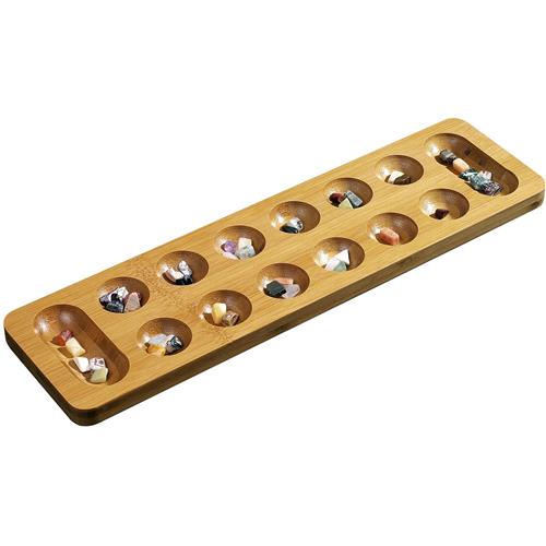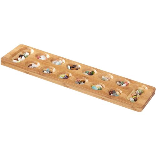 Philos Kalaha Bamboe is een bekend Kalaha-spel, gemaakt van eco-vriendelijke bamboe en wordt geleverd met een setje halfedelstenen. Dit strategische spel heeft eenvoudige spelregels maar biedt vele tactische mogelijkheden. De afmetingen van het spel zijn 470 x 127 x 20 mm. Kalaha, ook wel bekend als Mancala, wordt gespeeld tussen 2 spelers. De winnaar is degene die de meeste steentjes in zijn Kalaha heeft.