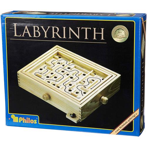 Labyrinth Groot van Philos is een groot labyrinth, waarbij de kogel door het bord te laten kantelen door het labyrinth moet komen. Gemaakt van berkehout en heeft afmetingen van 30 x 25 x 7 cm. Het spel is geschikt voor 1 speler vanaf 6 jaar en heeft een minimale speeltijd van 10 minuten en maximale speeltijd van 15 minuten. Het spel is gemaakt van hout en metaal.