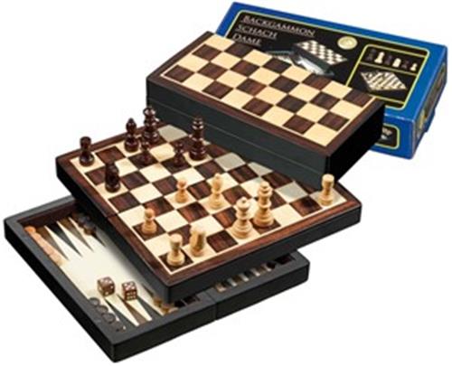 De Philos Reis Schaak/Dam/Backgammon Kassette is ideaal voor onderweg. Deze kassette biedt de mogelijkheid om te schaken, dammen en backgammon te spelen. Met een MDF constructie en magneetsluiting is deze kassette duurzaam en handig in gebruik. Het speelveld heeft een afmeting van 22 mm en de koningshoogte is 42 mm, wat zorgt voor een comfortabele speelervaring. Deze kassette is voorzien van het Staunton schaakstukkenontwerp en heeft een compact formaat van 200 x 100 x 41 mm, waardoor je het gemakkelijk overal mee naartoe kunt nemen.