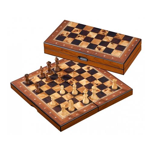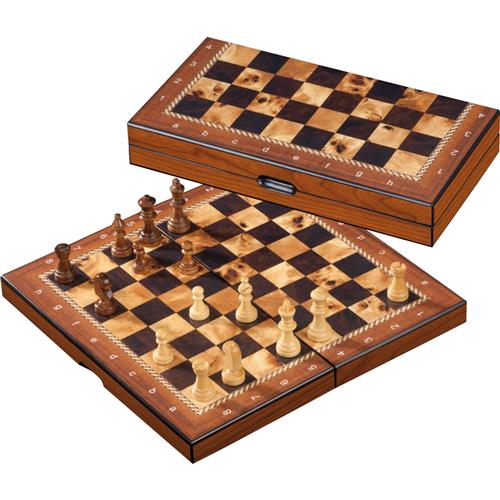 Deze schaakcassette van Philos heeft een opmerkelijke birdseye-maple optiek met ornamentele rand wat de schaakcassette een luxe uitstraling geeft. Het speelveld is geprint met cijfers en letters en heeft een veldmaat van 26mm. De schaakstukken zijn gemaakt van Schima hout met een Staunton design. De schaakcassette is gemaakt van MDF met birdseye-maple optiek en heeft een veldmaat van 26mm. Opgeklapt heeft de schaakcassette de afmetingen 265 x 135 x 45 mm. Het beschikt over een magnetisch slotje en is geschikt voor twee spelers vanaf 6 jaar. Verder weegt de verpakking 0.65 kg, en de speeltijd is 20 minuut voor een schaakspel in het Nederlands. In de verpakking vind je 1 Schaakcassette van het merk Philos met EAN 4014156026216.