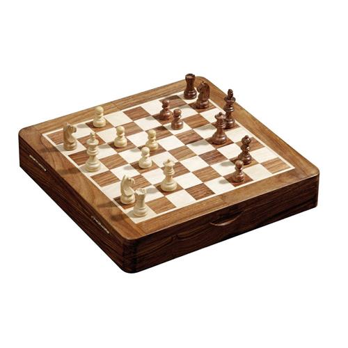De Philos Schaak Kassette van acacia hout is een schaakspel met een veld van 25,5 x 25,5 cm en een koningshoogte van 45 mm. Het speelbord is magnetisch, waardoor de stukken stevig op hun plaats blijven tijdens het spel. Met deze set kun je zowel dam- als schaakspellen spelen, waardoor het geschikt is voor verschillende spelers.